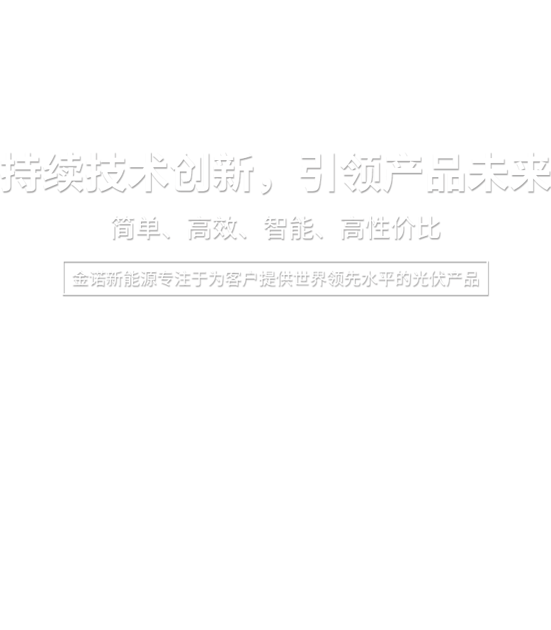 金諾新能源專注于為客戶提供世界領(lǐng)先水平的光伏產(chǎn)品,大力實(shí)施科技創(chuàng)新。我們秉持“品質(zhì)為先,服務(wù)全球”的理念,為客戶創(chuàng)造更高價(jià)值,并與您分享世界綠色能源在陽(yáng)光下的成長(zhǎng)喜悅!